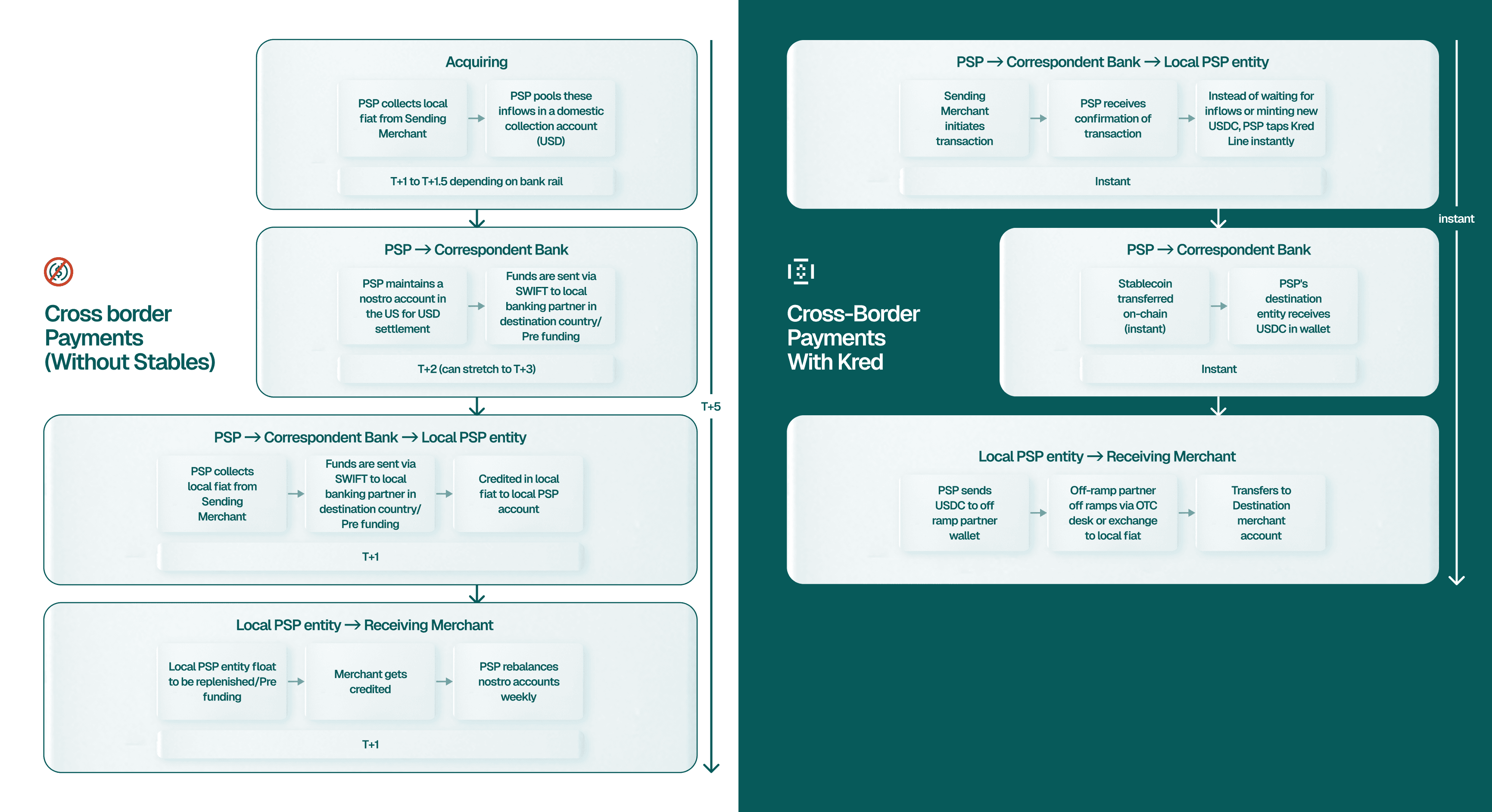 Kred provides just-in-time credit so PSPs no longer wait for inflows, settlement windows, or minting cycles. Liquidity becomes on-demand, not pre-funded.